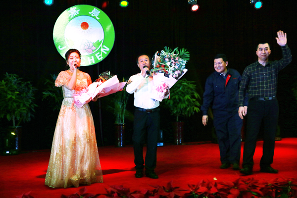 演出在女聲獨唱《紅紅的日子》中拉開帷幕,紅紅的日子,美滿的寫照,真實的反映出嘉晨人對集團公司現(xiàn)狀和對集團未來的美好向往。女聲獨唱《幸福山歌》描繪了嘉晨員工幸福、美滿的生活畫卷;歌曲《紅梅贊》歌曲樸實優(yōu)美,深情而又樂觀,告訴嘉晨人不能忘記老一輩革命先烈們,為了中華民族的崛起犧牲自我的革命主義精神和對憧憬中國美好未來的堅定信念;男聲獨唱《牡丹之歌》歌曲充滿濃郁的民族風格和新鮮的時代氣息;男聲獨唱《草原升起不落的太陽》描繪出嘉晨人熱愛家鄉(xiāng)、贊美生活、歌頌黨和領(lǐng)袖的心聲;大合唱《嘉晨之歌》展現(xiàn)了嘉晨人以強烈的主人翁精神,用熱情、素質(zhì)、實際行動支持企業(yè)的決心和奉獻自我的楷模精神;鐵嶺民間藝術(shù)團的二人傳表演:詼諧幽默,富有生活氣息,讓在場所有人無不開懷大笑。京胡獨奏《梨花頌》,電子琴獨奏《茉莉花》,歌曲《為了誰》、《在此刻》、《我們不一樣》、《老家拉拉屯》、《把酒倒?jié)M》、《我們不一樣》、《好男兒》,等節(jié)目輪番上演,晚會最后在集團孫總一首《呼倫貝爾大草原》的優(yōu)美旋律中落下帷幕。整臺晚會精彩紛呈,內(nèi)容豐富,掌聲不斷,為嘉晨集團干部職工送上了一道豐富多彩的文化大餐。圖為晚會現(xiàn)場。
