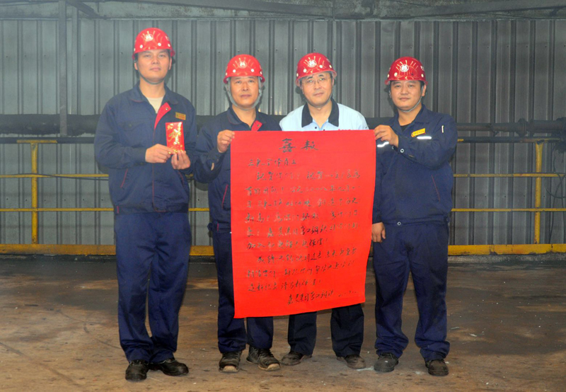 2018年9月11日,營口鋼鐵有限公司軋鋼廠三軋車間日產(chǎn)線材4274噸,打破了軋鋼車間日生產(chǎn)記錄,創(chuàng)造了歷史新高。集團(tuán)副總裁孫朝英等領(lǐng)導(dǎo)到場祝賀。