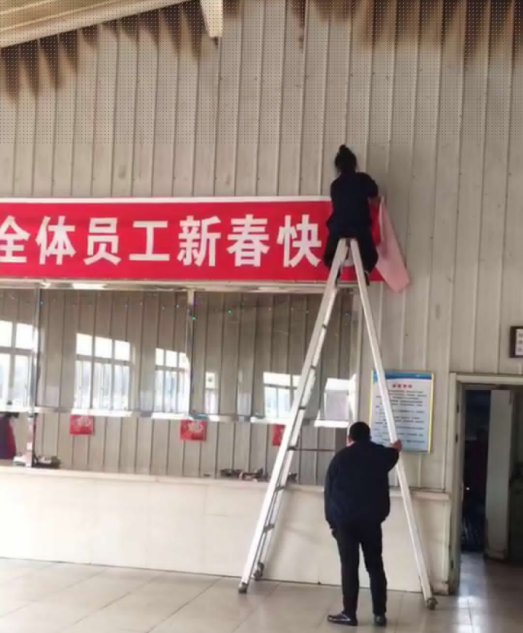 當璀璨的煙花在嘉晨上空朵朵綻放之時,公司領(lǐng)導班子一行又來到食堂看望了仍在工作的廚師、服務(wù)員及就餐職工。賈總向大家拜年!并感謝食堂員工為保證集團燃化職工度過春節(jié)而精心準備的可口、精美菜肴。廚師長代表全體廚師及服務(wù)人員,感謝公司領(lǐng)導的關(guān)懷,并表示,要發(fā)揚不怕苦、不怕累的嘉晨精神,為了全體職工能過好春節(jié)而努力工作,食堂員工耿艷為了給不能回家過年的職工營造家的感覺,爬上高梯,精心打扮食堂,讓回不了家的職工感受到家的溫暖、嘉晨的愛意!