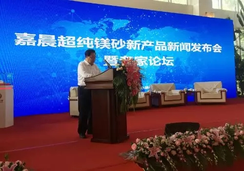 5月17日下午,由嘉晨集團、營口市人民政府新聞辦公室、營口市工業(yè)和信息化局聯(lián)合舉辦的嘉晨集團超純鎂砂新產(chǎn)品新聞發(fā)布會暨專家論壇,在嘉晨集團總部大樓舉行。嘉晨集團董事長孫壽寬、總裁孫朝英、總工程師畢德利,省發(fā)改委、省工信廳、省科技廳相關領導,營口市副市長翁永財,及市有關部門主要領導;大石橋市政府、老邊區(qū)政府主要領導及相關部門;鎂制品行業(yè)協(xié)會領導、國內(nèi)外耐火材料行業(yè)專家,以及70多家耐火材料行業(yè)企業(yè)家共計140余人出席。20多家媒體記者參加了發(fā)布會。
