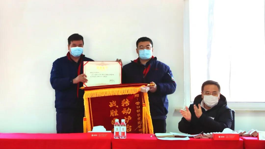 張總為煉鐵廠頒發(fā)錦旗和榮譽證書