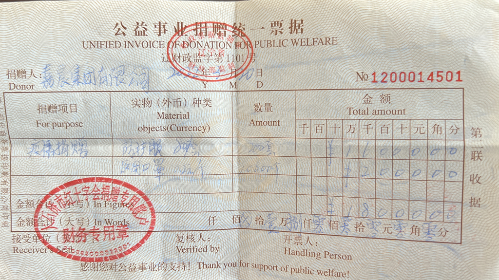 至此,2019年以來,嘉晨集團(tuán)已累計(jì)向營口地區(qū)捐款及捐物共計(jì)2350余萬元,很好的履行了企業(yè)的社會(huì)責(zé)任。