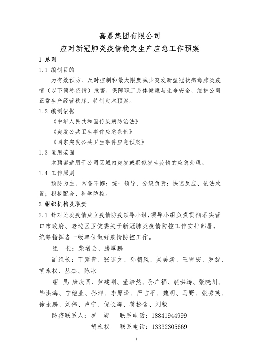 嘉晨集團(tuán)應(yīng)對(duì)新冠肺炎疫情穩(wěn)定生產(chǎn)應(yīng)急工作預(yù)案